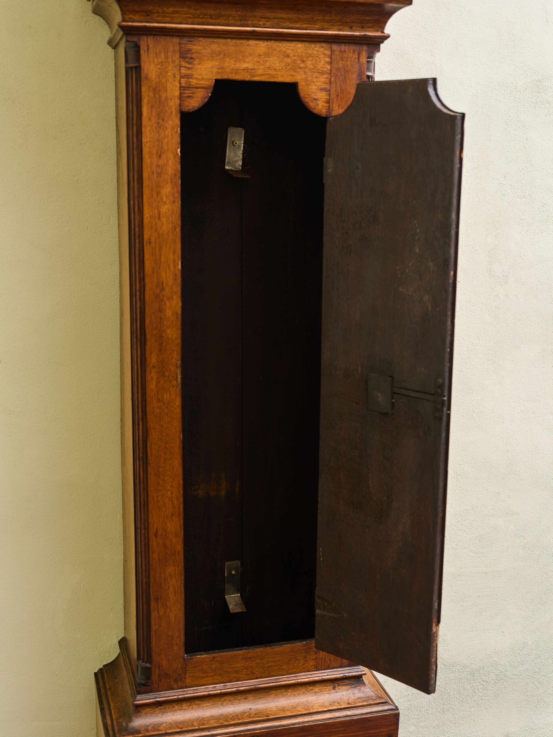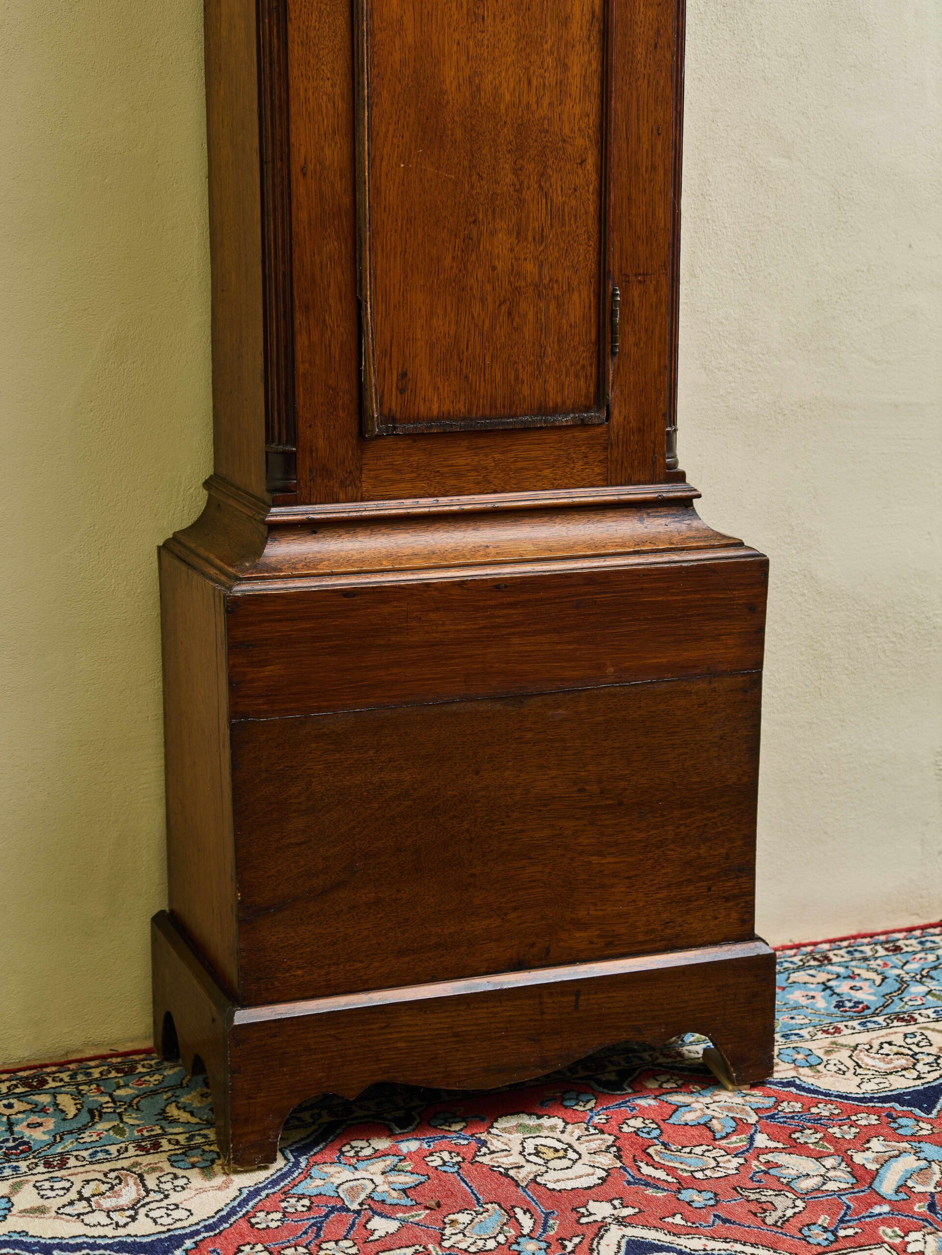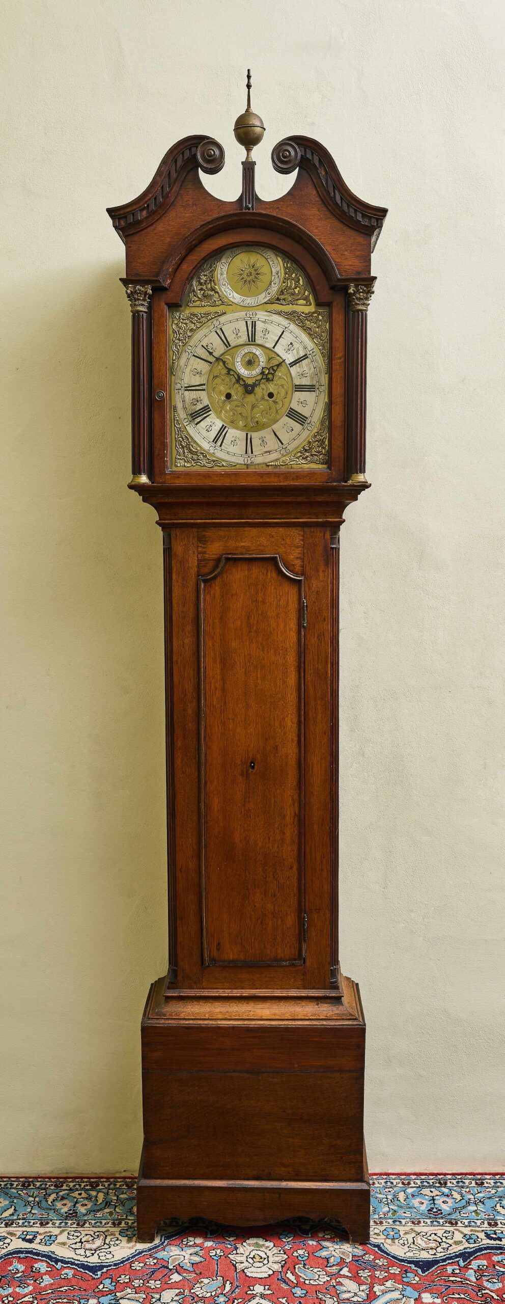 Stylové podlahové hodiny z 19. století, které spojují historický půvab s moderní praktičností. Skříň je vyrobena z kvalitního dřeva s elegantním tvarováním a klasickými architektonickými detaily, které odrážejí estetiku 19. století. Bohatě zdobený kovový ciferník s římskými číslicemi, jemným reliéfem a výraznou hvězdicí ve vrchní části je autentickým prvkem původních hodin. Hodinový stroj byl nahrazen moderním quartzovým strojkem na baterii, díky čemuž hodiny nevyžadují natahování a zůstávají tiché v chodu. Tento unikátní kus je ideální jako dekorativní doplněk historického interiéru nebo reprezentativní místnosti.